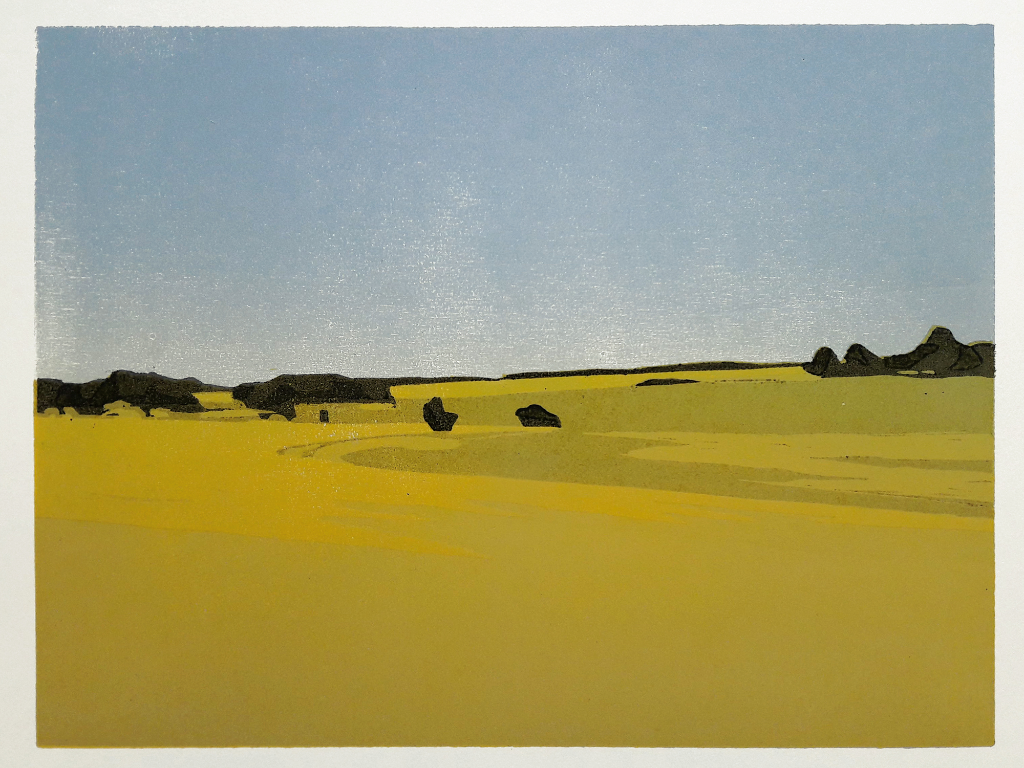 Landschaften und vom Menschen veränderte Landschaftsformen spielen im Schaffen von Stephanie Marx eine zentrale Rolle; seien es Felsen und Gletscheransichten der Schweizer Alpen, Küstenpartien, Tagebaue, Ansichten aus Brandenburg oder aus dem Osterzgebirge. Aus großer Entfernung, häufig aus der Draufsicht, überblickt die Künstlerin die ausgewählten Gegenden und stellt sie in panoramaartigen Farbdrucken dar. Nach dem Skizzieren vor Ort folgt die Auswahl des Druckstocks. Die Dresdener Grafikerin fertigt alle Farbholzschnitte in der Technik der verlorenen Form, bei der nach dem Druck einer Farbebene der Druckstock weiterbearbeitet wird. Jeder Holzschnitt kann so nur einmalig in einer zu Beginn festgelegten Auflagengröße gedruckt werden. Für ihr grafisches Schaffen, das sich durch „Ordnung und Klarheit der Formen“ auszeichnet und das mit unaufgeregter Sicherheit komponierte, farblich fein abgestimmte Landschaften ebenso umfasst wie Linolschnitte von Maschinen, Pflanzen, Tieren, menschlichen Figuren und Mischwesen daraus, wurde die Künstlerin 2020 mit dem Karl-Krug-Preis der Leipziger Grafikbörse e. V. für Druckgrafik geehrt.