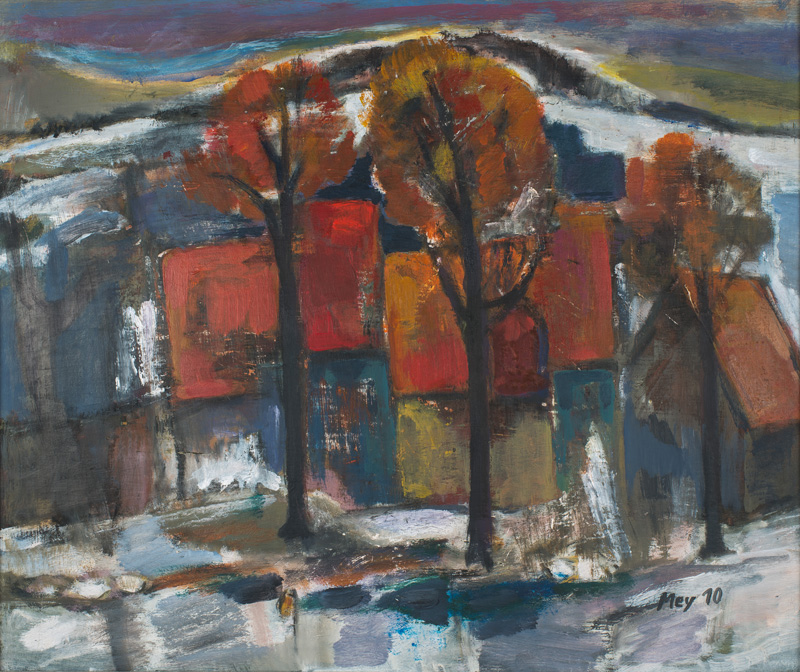 Die expressive Umgangsweise mit der Farbe erlernte er im Mal- und Zeichenzirkel im Kulturhaus Erzhammer unter Leitung Carl-Heinz Westenburgers. Vorbilder waren expressionistische und kubistische Künstler, deren Mittel Mey für seine Zwecke nutzt. Neben Gebirgsdorfansichten, die sich teilweise zu fächerartig verdichten Farbflächen oder zu abstrakten, würfelförmigen Auflösungen von Hügeln und Türmen verselbstständigen, stellte der Maler auch Halden des Uranbergbaus der Wismut AG dar; sowie – gleichsam als Gegenpol – weibliche Akte.